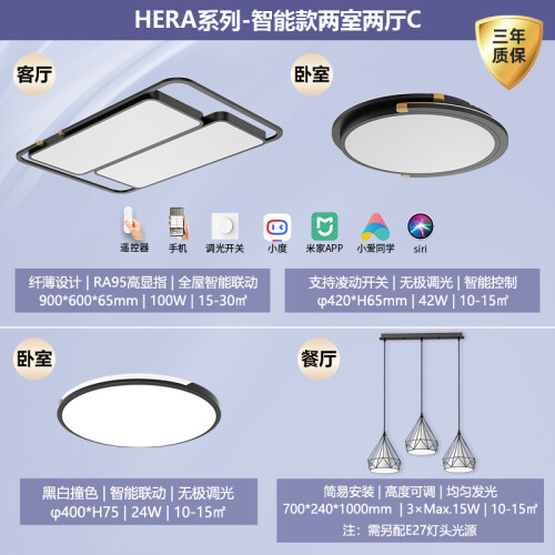 当前的位置: 首页 > 今日值得买 > Yeelight易来Hera智能吸顶灯LED现代简约智能联动手机app小爱同学客厅灯温馨卧室灯餐厅 Hera智能两室两厅C:4灯=客厅+卧室*2+餐厅