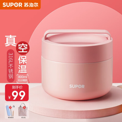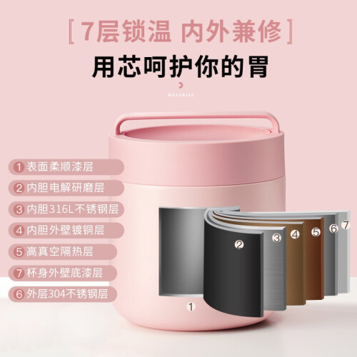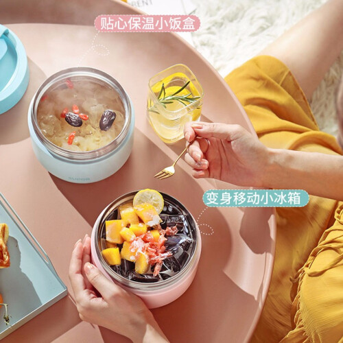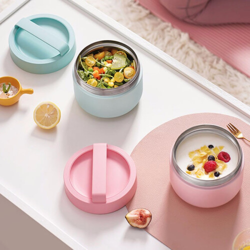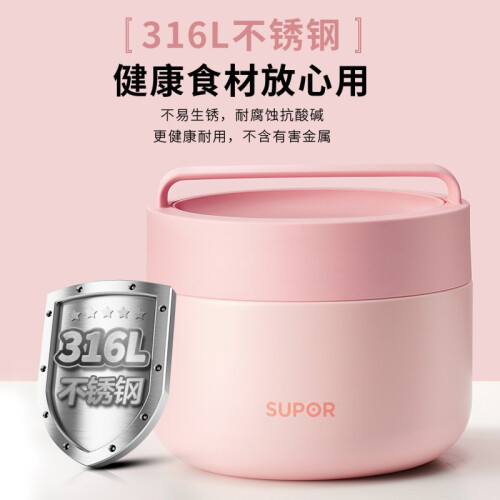 不易生锈,耐腐蚀抗酸碱,更健康耐用,不含有害金属,密封设计,小巧圆润的造型,方便携带。一体化手提杯盖,方便提拎。密封内盖,增加泄气阀,减小打开阻力。分隔小盒,分隔不串味。