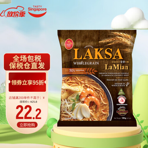 当前的位置: 首页 > 今日值得买 > 百胜厨 新加坡进口PRIMA TASTE泡面叻沙非油炸拉面速食泡面全麦方便面 全麦叻沙味185g