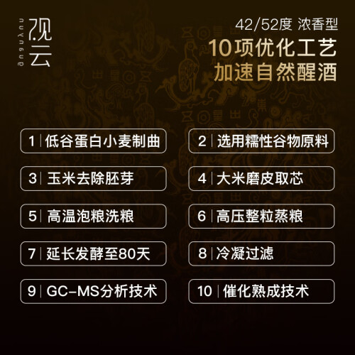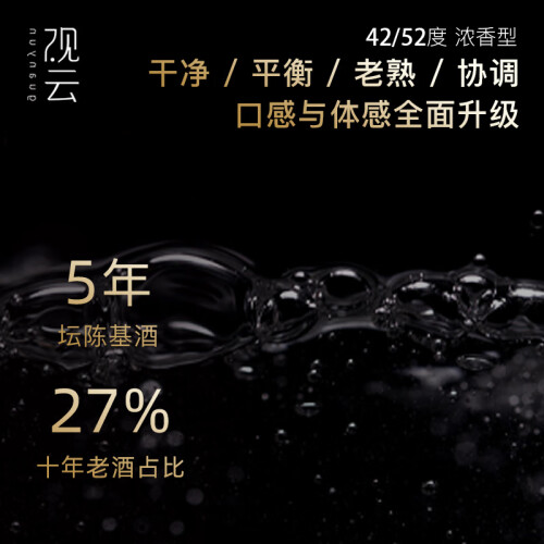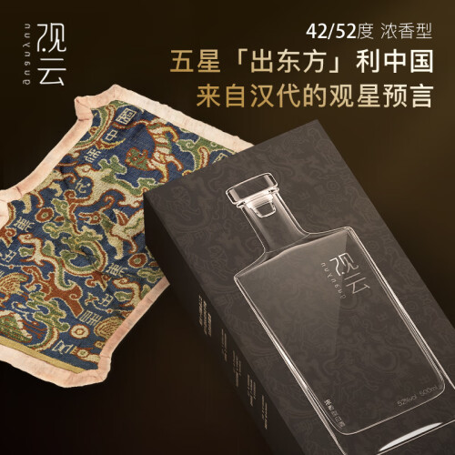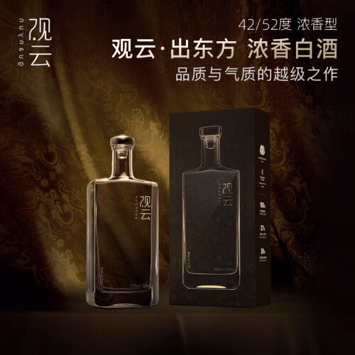 观云出东方是江苏观云酒业有限公司出产的一款高度浓香型白酒。 观云是中国新锐白酒品牌。观云的前身,是创立于雍正元年的涌源酒坊,曾在1910年清政府南洋劝业会上摘得金牌,是双沟镇酿酒技艺的集大成者。观云CEO陈振宇,涌源糟坊陈氏第八代传人。目标是做面向未来的中国白酒。 观云出东方是观云创新酿造工艺与酒体设计技艺的集大成者,也是观云越级品质的标杆产品。它具备非常典型的“绵、甜、净、爽”苏派浓香风格,尤其体现在“净”上,大大减少了浓香型白酒因窖泥而产生的杂质、窖臭味与邪杂味,带来更为干净、平衡的口感体验,同时也大大加速自然醒酒,甚至会有一种边喝边醒的感觉。