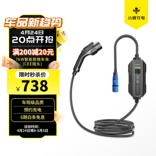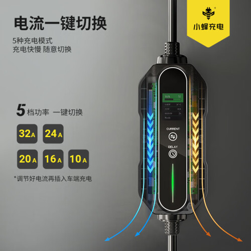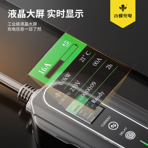 强大兼容性,即插即用,适配各式爱车,通用七孔标准,适用99%国标电动汽车。有插座的地方就能安全充电,居家旅行必备。液晶显示大屏。电压和电流充电功率,时间,状态,温度等均可直观呈现。充电实时状况一目了然。自选充电模式,快慢随意切换。1至12小时智能预约定时充电。