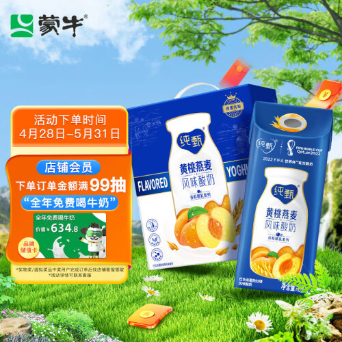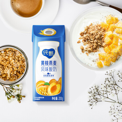 蒙牛是蒙牛集团旗下主力品牌,于1999年成立,总部位于中国内蒙。蒙牛品牌主打液体奶、冰激凌和其他乳制品等产品。蒙牛旗下有特仑苏、未来星、焕轻、优益C、冠益乳、酸酸乳及纯甄等品牌。此款为蒙牛 纯甄风味酸奶,燕麦+黄桃口味,规格为200g*10瓶。