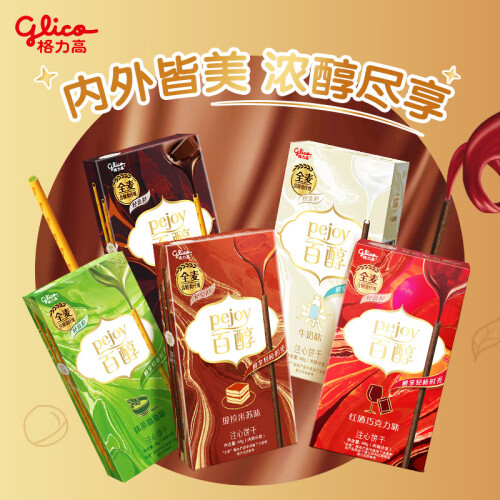 格力高的饼干棒按系列分为百力滋、百奇和百醇,全国的大小超市常见零食,磨牙利器。一边看电影一遍满满嗑这个可以完胜爆米花了。此款为红酒巧克力味、提拉米苏味、抹茶慕斯味、牛奶味和巧克力味5盒装,规格:48g*5盒。