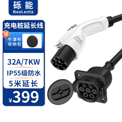 砾能(NeoLenta)充电桩延长线,母座转枪头,最大支持7KW交流桩(兼容低功率如3.5KW随车充),5米线长,轻松解决充电桩车位被占、随车充线长不够等问题,充电不费劲。认证电缆,充电无损耗温度低,安全放心。