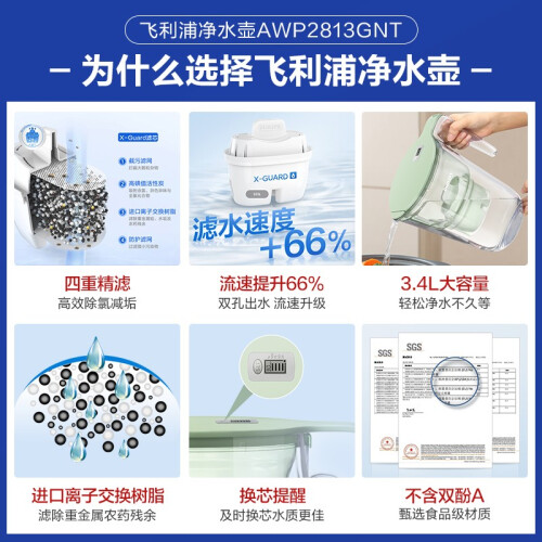 当前的位置: 首页 > 今日值得买 > 飞利浦(PHILIPS)全新升级净水壶 家用滤水壶 厨房自来水过滤净水器 AWP2813GNT