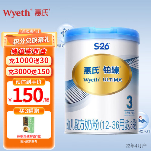 Wyeth 惠氏是著名奶粉品牌,在婴幼儿营养品的研制和营销方面有着近百年历史,这款s-26铂臻系列奶源100%为瑞士原装原罐进口,来自于生活在海拔1840米阿尔卑斯山生态区的奶牛,从而确保纯净,特别添加5大重要磷脂,协同DHA、AA等营养共同发挥作用,帮助宝宝大脑神经元网络化发育,含有牛磺酸、叶黄素、DHA、维生素D、低聚半乳糖等多种营养,能够补充宝宝在日常的饮食中不能获取或是获取不足的各种营养,优质乳糖配方,不添加蔗糖白砂糖,有助于宝宝养成良好饮食习惯。