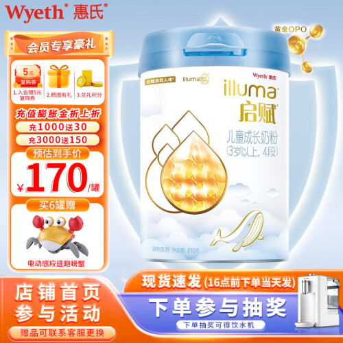 Wyeth 惠氏是著名奶粉品牌,在婴幼儿营养品的研制和营销方面有着近百年历史,启赋是惠氏旗下的高端奶粉品牌,奶源全部来自爱尔兰。蓝钻启赋是惠氏在2019年推出的超高端奶粉系列,富含乳源活性因子,可以亲和人体的活性营养,蕴含有神奇的力量,可以扮演宝宝肚子的吸铁石,帮助宝宝构建自然的微生态,帮助宝宝提升保护力。亲和人体配方,OPO达到40%黄金比例,有助提升亲和和喂养效果,有助于钙吸收,自然贴合宝宝每一步成长所需,帮助支持宝宝体格、骨骼、头脑、免疫和吸收五大成长原动力。