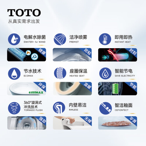 纳米级的陶瓷表面格外平滑,且具有良好的亲水 性,冲洗污垢更加轻松。