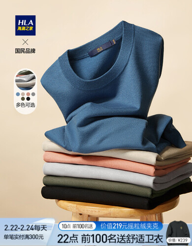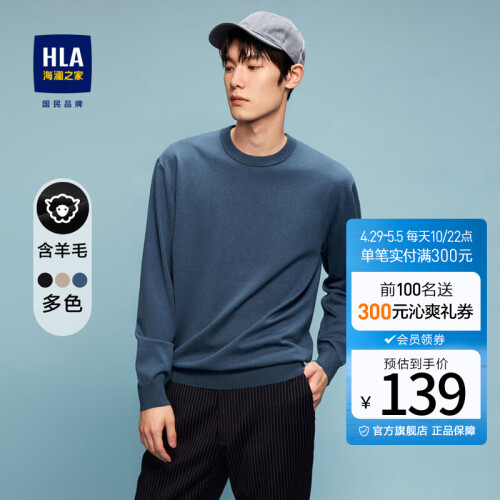 HLA 海澜之家 男士纯色针织衫 HNZAW3D001A选用含羊毛的纱线,细腻针织,柔软触感,经典圆领方便穿脱,平整肩部细致拼接,罗纹袖口舒适活动,平整下摆贴合身形。