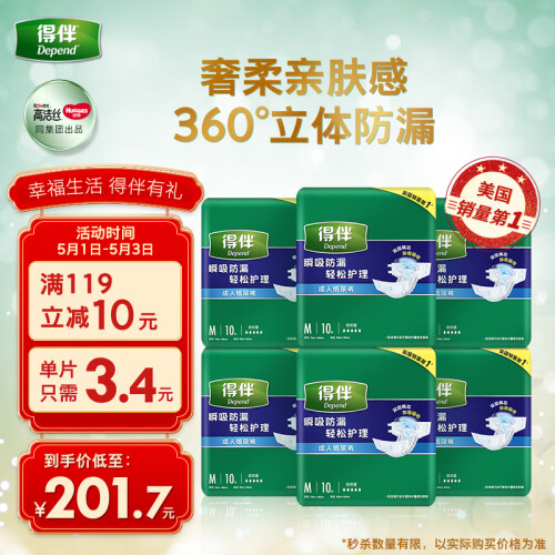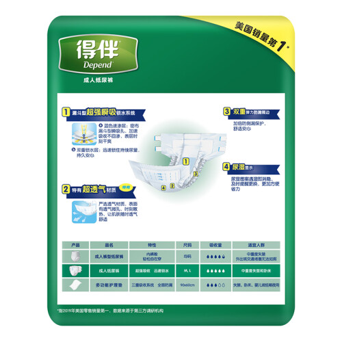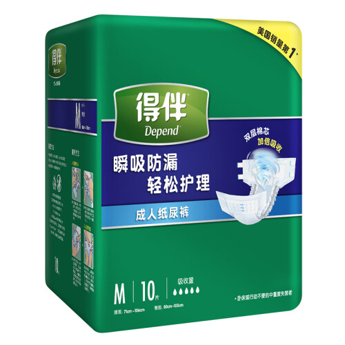 人人都会老,请关爱老人~ Depend得伴是美国知名的生活用纸生产商Kimberly-Clark金佰利旗下成人失禁护理品牌。得伴内裤型成人纸尿裤,设计上更加轻便贴身,方便穿脱,此款是箱装,10片装*6包。