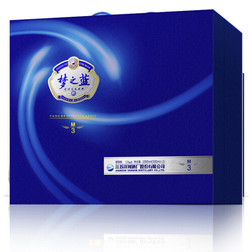 梦之蓝M3是洋河最畅销的蓝色经典系列中的一款绵柔浓香型产品。蓝色渐变,层次感和色彩感更强烈的整体瓶身设计,再缀以轻盈与飘逸,意蕴悠长的“蓝色水滴”,玲珑剔透的蓝色瓶盖与与瓶底的蓝色相呼应,呈现出一种“水晶之梦”的感觉,《老子》云:一生二,二生三,三生万物。梦三(M3)意为梦之初,人生有不同的梦。内在的酒体除了保持了洋河传统的甜、绵、软、净、香风格,还让消费者更多的体验到更“绵柔“的涵义,突出了梦一般的“味”觉享受,具有香气宜人、绵甜柔和、醇厚净爽、余味悠长的风格特点。