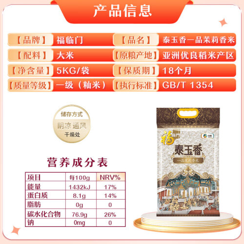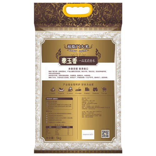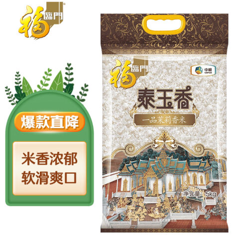 很多朋友更信任泰国原包的茉莉香米是因为不少企业在国内分装时会掺进其他大米。福临门是中粮自有品牌,也就是国字号,质量应该不会打脸。此款茉莉香米米粒修长纤细,米色润泽晶莹,烹煮后香味清新,纯白剔透,口感柔软爽滑。规格:5kg。
