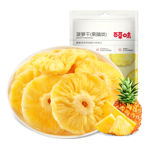 Be&Cheery 百草味 菠萝干保留菠萝原始水分与香甜口感,散发浓郁果香,香酥可口。规格100g。