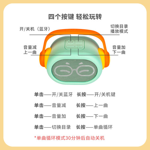 拥有好音质的蓝牙音箱,萌趣可爱,单手可握,操作简单,轻松启蒙,精选376集内容,国学,中英儿歌,认知启蒙。