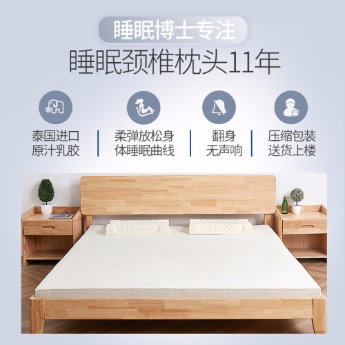 此款Aisleep 睡眠博士 天然乳胶标准型床垫 ,采用优质原生乳胶为原材料,回弹性出众,所含橡胶蛋白能有效防止螨虫滋生。遍布的蜂窝透气孔,可排除多余热量和湿气,干爽舒适。一体成型,双面可睡,共有3cm、5cm、15cm、18cm、四种不同厚度,以及多种规格尺寸。