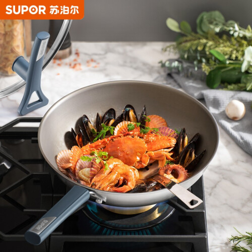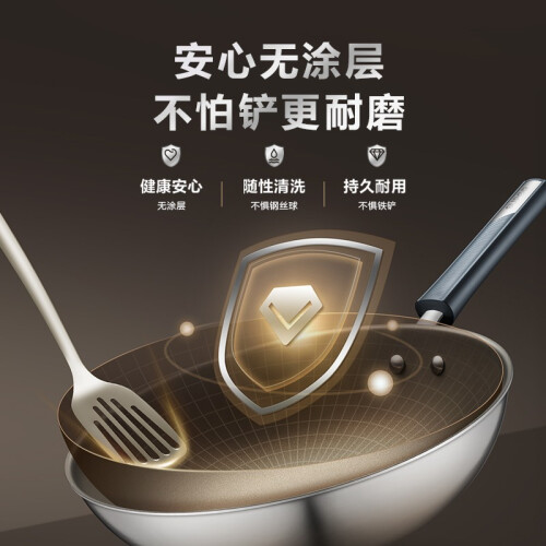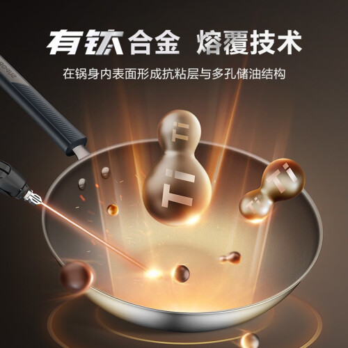 选用复合钢材质,耐磨耐用,不惧铁铲、钢丝球,更耐用,导热迅速均匀,烹饪节能,轻烟不易焦糊,将自身抗粘材料(具有低表面性能的非晶材料)通过熔覆技术与锅身內表面结合,形成微观凹凸结构,配合油膜达到物理抗粘效果。