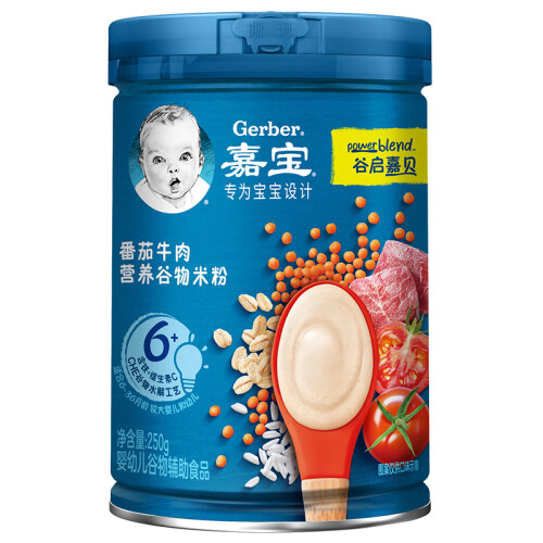 Gerber 嘉宝是美国著名的婴幼儿食品用品生产商,口碑较好这款大米粉,为非转基因食品,不添加人工色素香精等,精选优质农场,天然优质食材,无菌全自动加工生产。粉质细腻,冲泡简单。此款为番茄牛肉味,含量为250g,富含易吸收的二价铁,补充铁元素更高效,大分子水解成小分子,细腻米糊好吸收,专业强化铁米粉,配方设计充分考虑到宝宝一日三餐的饮食规律,妈妈无需担心米粉营养摄入不足或超标。