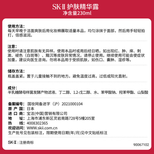 SK-II嫩肤清莹露,是洁面之后使用的爽肤水,其中含有招牌的Pitera天然活肤酵母精华,AHA以及水杨酸成分,能够帮助皮肤的新陈代谢,调节角质层,起到再次清洁的作用,由此促进后续护肤品更好的吸收,特别适合搭配明星产品神仙水使用,效果更好;质地清爽吸收快,使用起来无负担,很适合油性、混合性肌肤。但是酸类的含量都比较低,效果可能不是特别明显,理论上天天使用也是没有问题的,但含酸类成分,敏感肌还是建议做测试。网友反馈,控油祛痘有一定效果,对于白头黑头的清理也不错。