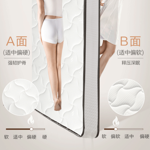 无胶椰棕,加硬护脊,搭配整网弹簧,有力承托,侧说脊椎不侧弯,仰睡脊椎保持正常曲度。AB双面睡感,A面偏硬,B面适中,均选用防螨抑菌面料,围边带防撞圆角设计,侧围呼吸网布,经加固处理,久睡不塌陷。床垫厚度20cm(±1.5cm)。适合儿童、青少年、老人使用,想要保护脊椎的朋友也可选择此款。