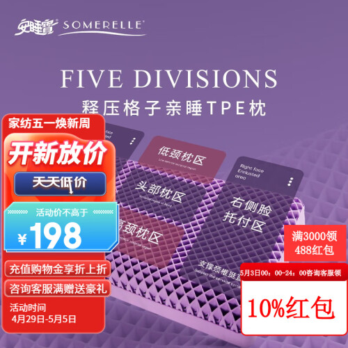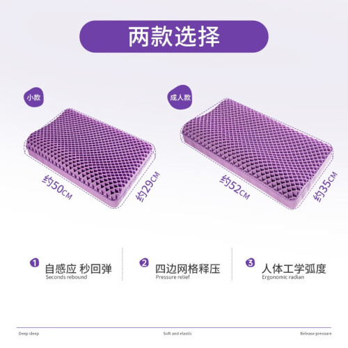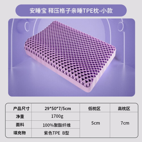当前的位置: 首页 > 今日值得买 > 安睡宝(SOMERELLE) 深睡格子枕TPE无压枕头可水洗透气高低长枕高弹成人颈椎枕头 释压格子亲睡TPE枕-29*50*7 紫