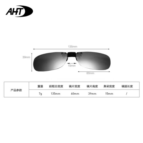 AHT是来自宝岛台湾的品牌,主打防蓝光眼镜,也有其他眼镜款式。这款偏光太阳镜夹片,满足了近视人员的需求,可翻转设计更加方便,自重仅7.2g轻盈便携。镜片采用德国进口TAC,镜架则为PC材质,镜片宽度为60mm,高度为39mm,鼻梁高度为15mm。