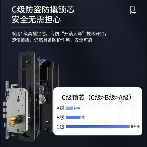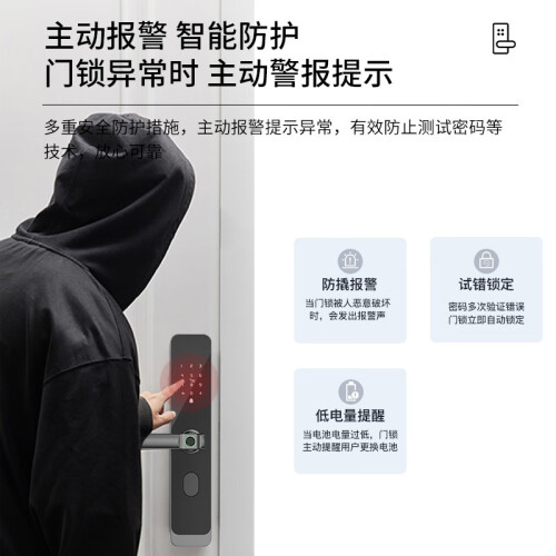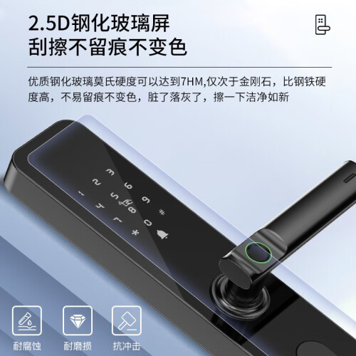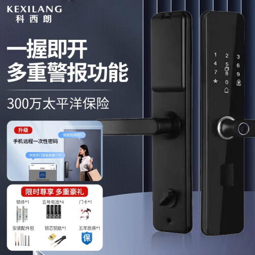科西朗 K09智能锁,全钢锁体,C级锁芯,手机远程,防撬报警,临时电源开门,一握即开,霸王锁体,支持刷卡,密码及手环解锁,微信生成零时密码,客人到访以及家政服务无需等待。