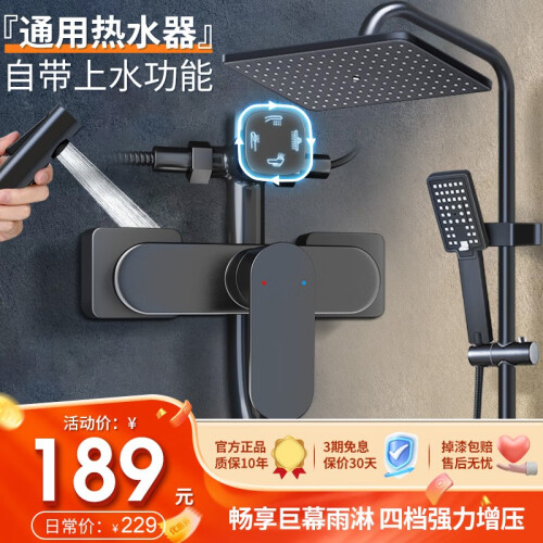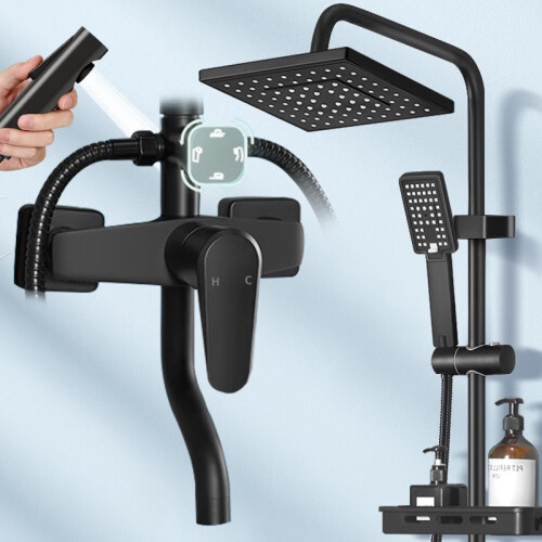 当前的位置: 首页 > 今日值得买 > JIATOER淋浴花洒套装浴室全套花洒淋雨黑色花洒喷头三件套增压淋浴器 四档妇洗方形(带置物架托盘)