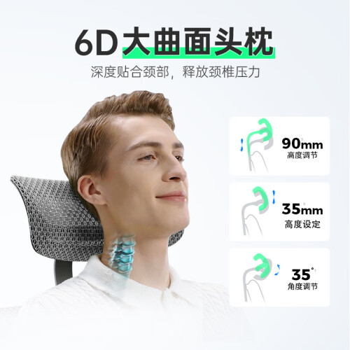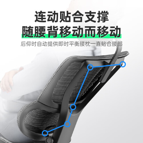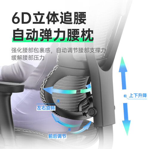 2.超大曲面包裹式智能移动6D腰枕:强化腰部支撑,贴合支撑深度释效腰部压力,靠越久越舒服,专为久坐职场白领设计的高端护腰人体工学椅。