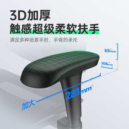 3.椅背的5点移动支撑设计,让椅背拥有更好灵活支撑性能,很好地解决久坐肩、背、腰易劳损问题;