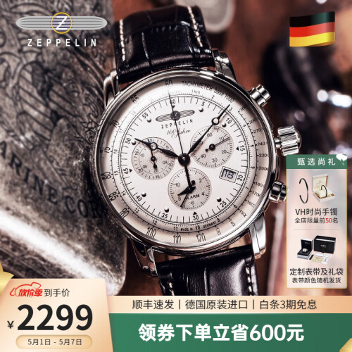 这款ZEPPELIN男款石英表,是ZEPPELIN 齐柏林飞艇100周年纪念推出的特别款,结合了经典优雅的元素,如半球型的表盘和圆顶水晶玻璃,配备高品质的瑞士石英机芯,具有双时区功能。是一款测速、测距、闹铃等多种功能,并兼具颜值的一款德国原装进口手表,表盘尺寸43mm*11mm。