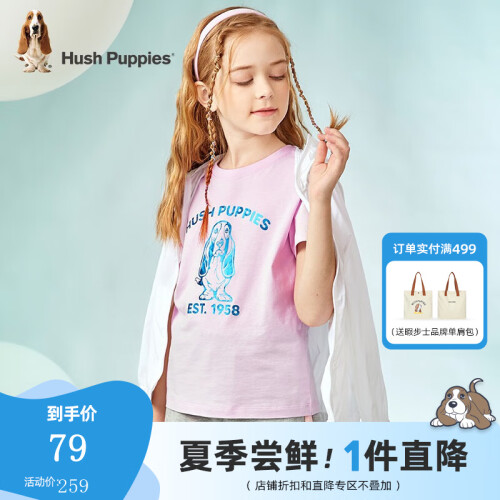 Hush Puppies 暇步士 儿童休闲短袖,天然健康,亲肤柔软,清爽透气,穿着舒适。精致细节,呵护成长。经典圆领,不易变形。宽松袖口,休闲舒适。松紧裤腰,穿着舒适。