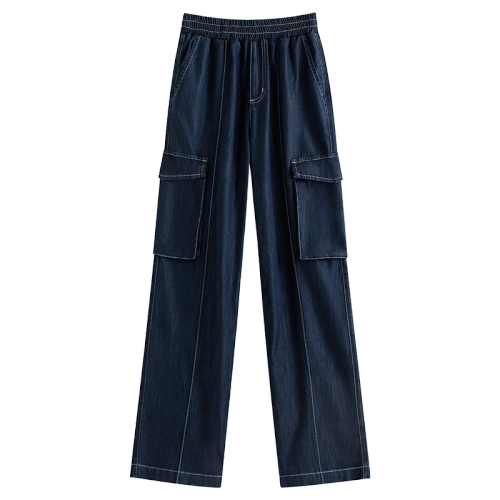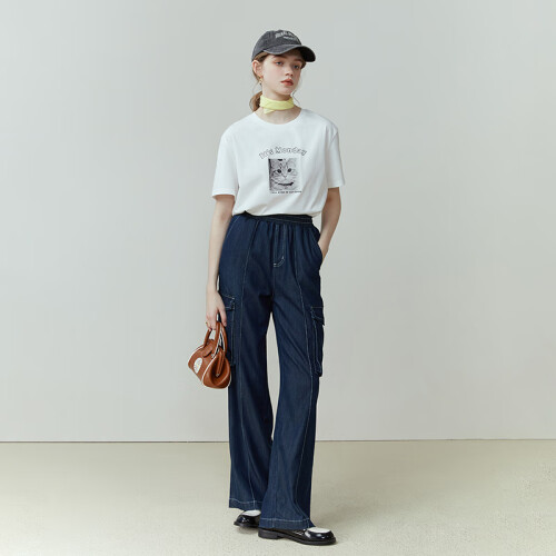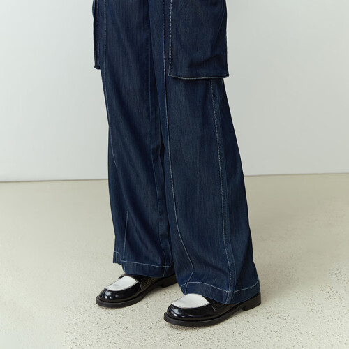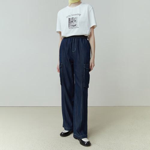 FANSILANEN 范思蓝恩 女士工装牛仔裤 23FS12001 面料采用53%莱赛尔、21.5%锦纶、13.9%棉、11.6%醋纤,舒适弹力裤腰,工装大口袋装点。
