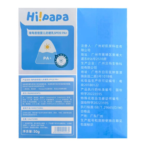 Hi!papa 海龟爸爸 儿童防晒霜 50g,美丽修行绿色配方,6大检测把关,儿童、脆弱肌放心用。非纳米级二氧化钛、氧化锌,纯物理反射UV,抵御晒红、晒黑。