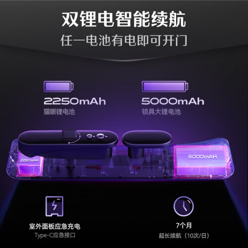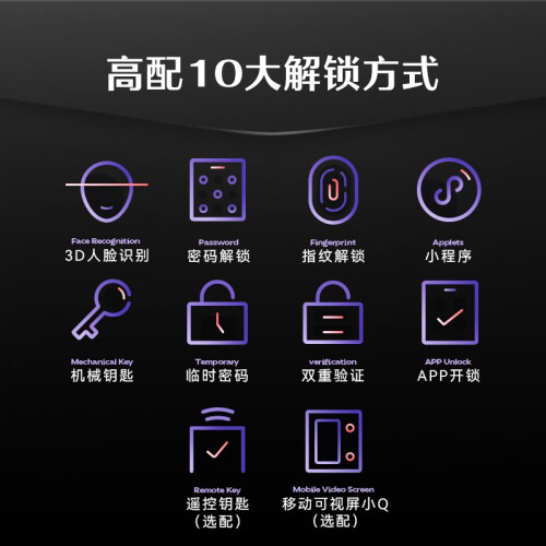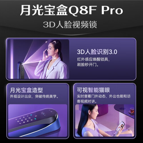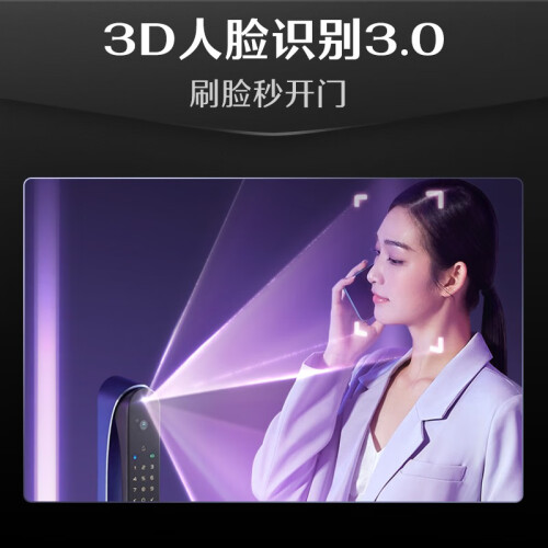 红外感应唤醒锁具,3D人脸成功识别后锁具自动开锁,实现无感入门。采用的“二代3D人脸识别技术+人工智能”它可做到日常化妆、戴眼镜或在不同照明条件下 都能精准识别,轻松回家。
