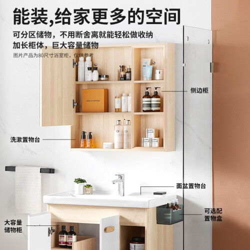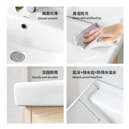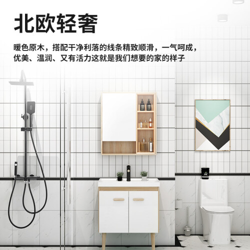 实木浴室柜为大白系列,北欧轻奢风,暖色原木,干净温润,适合各种风格的卫生间装修,大容量收纳方便,环保免漆,一体陶瓷盆,采用实木板材,坚固耐用。