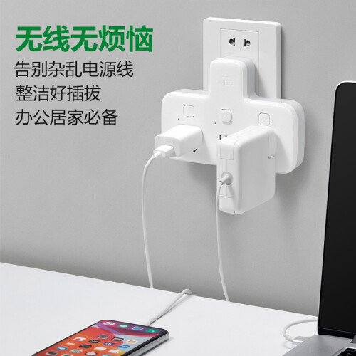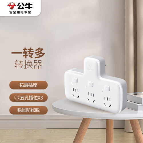 此款转换器为3位分控插座,方便多电器用电,品字型设计,不遮挡相邻的插孔,用电便利。无线设计,告别杂乱的电源线,整洁好插拔。新国标,符合安全新标准。壳体高温阻燃,保障用电安全。