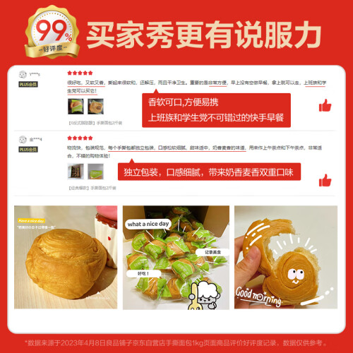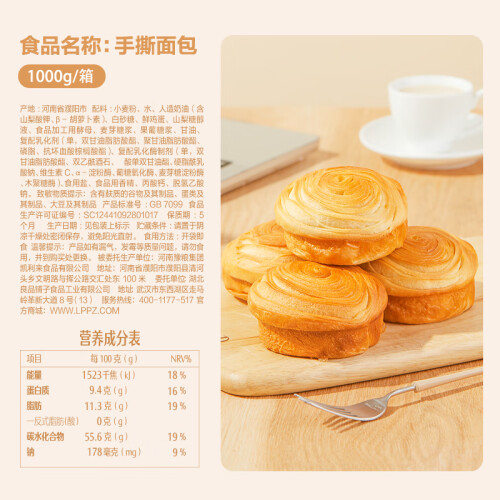 良品铺子是国内著名的休闲食品品牌,除了网络销售,目前在全国大部分地区也设有门店。这款良品铺子 手撕面包,精选中粮小麦粉,油片折叠工艺,入口松软,千层面包独特的层次带来丰富的口感,单独小包装,方便卫生,饿的时候用来充饥非常不错。规格:2斤