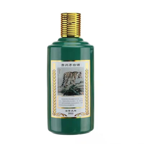 茅台 生肖虎年纪念酒酒取寅木之属性,瓶身采用碧玺绿,意为森林之色、生命之色,象征天地相交、万物相生、生机勃勃,包装采用著名书法家鄢福初书法作品及著名画家孟祥顺《王者气》画作为主元素创作,灵动传神。突出了茅台品质和茅台文化的“王者气”。