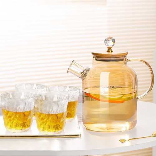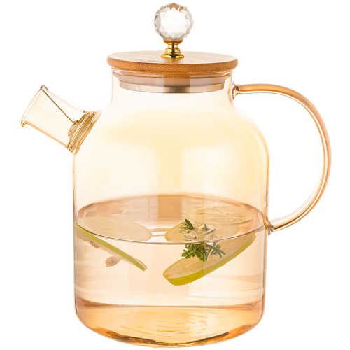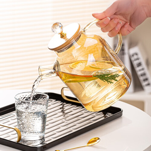 朦胧的琥珀色玻璃高档复古大气,采用全新雕刻提手设计,360°钻石切割,“bulingbuling”精致闪亮。硼硅材质壶身,可明火加热,用来煮花茶、牛奶、咖啡都是非常不错的选择。