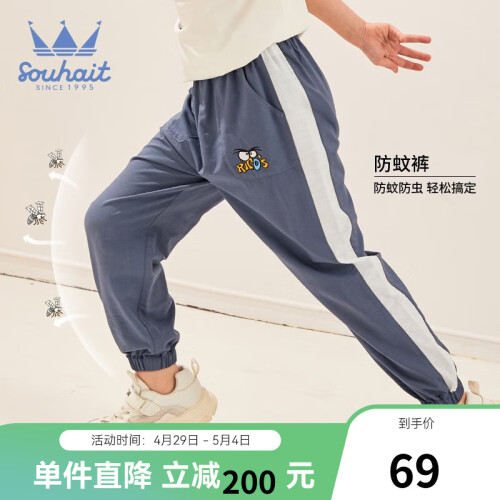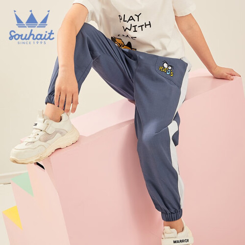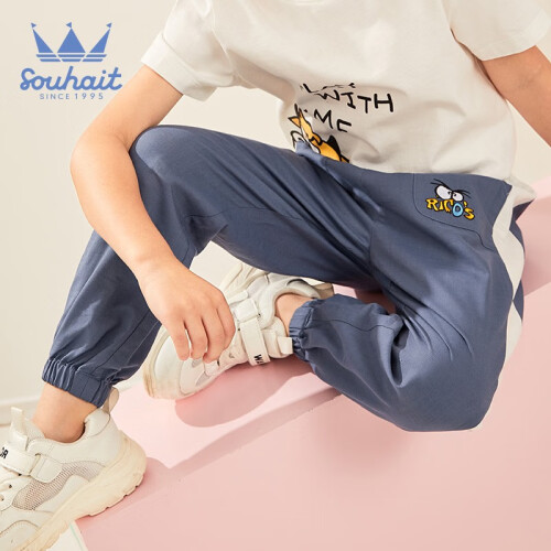 Souhait 水孩儿 儿童运动裤,舒适宽松版型,成长不束缚,奇思妙想不设限。腰部松紧设计,方便穿脱,灵活自如,质感面料打造,搭配恰到好处,触感柔软,富有弹力。