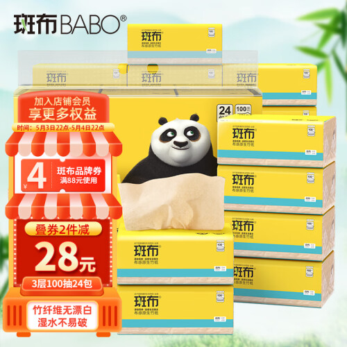 斑布卷纸BASE系列:采用100%天然原生竹浆制成,天然不漂白无荧光,不添加有害化学物质,可直接接触肌肤,温和健康;并且含竹醌,竹醌有抑菌特性,它对细菌和虫害能起到有效的抑制作用;多孔纤维比例平衡,无粉屑不掉渣,柔韧吸水性好;竹浆纤维两倍长度,提升韧性,湿水不易破,可干湿两用,一张搞定安全感,更好的守护家人健康,宝妈用了更放心。