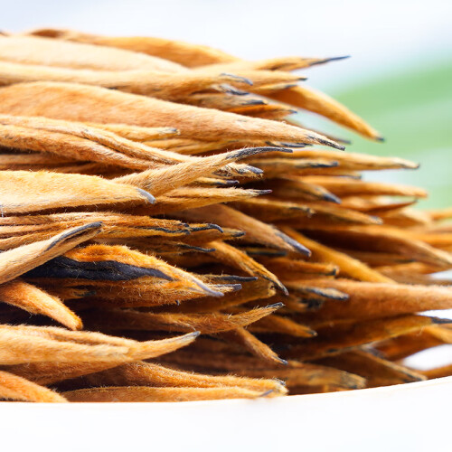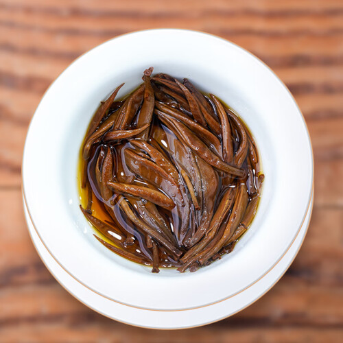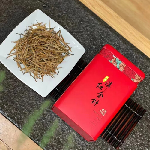 此款滇红金针红茶原料精选自核心产区,外形挺直如针,亭亭玉立,芽头肥硕金黄,润泽泛光,一股茶香扑面而来,沁人心脾;汤色金红清澈明亮,茶汤入口柔滑清甜,蜜香四溅,舌底生津;叶底匀整,条索完整,一芽一叶,色泽红亮鲜美,肥厚,无梗全嫩芽。