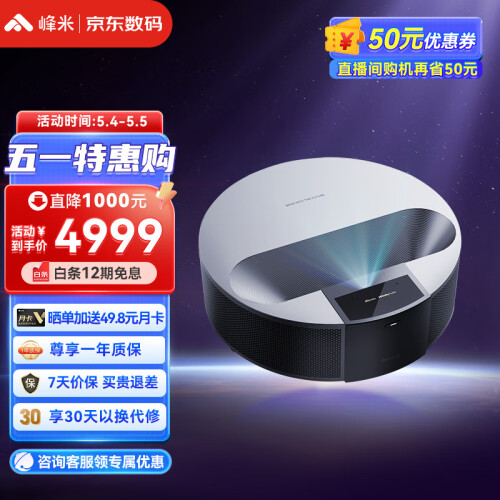 峰米R1超短焦激光投影仪搭载ALPD显示技术,拥有1600ANSI流明亮度,支持投射50-200英寸的画面尺寸。其对比度达3000:1,可看到更多暗部细节。