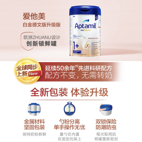 爱他美奶粉版本众多,有国行版、香港版、澳洲版、英国版、德国版,其中德国版是最受欢迎版本,一方面是因为它是爱他美品牌的发源地和原产地,另一方面因其配方接近母乳、分段细致、监管严格等优点获得全世界妈妈们的认可,这款德版白金系列是爱他美奶粉中最受欢迎的系列之一,特别添加了GOS/FOS益生元组合,GOS/FOS益生元负责促进肠道益菌的成长,帮助宝宝建立肠道健康,宝宝喝起来没有负担,别易上火便秘,特别适合肠道敏感的宝宝,宝宝肠道好,胃口棒,免疫力自然提升,配方中还添加了天然乳脂和HMO母乳低聚糖,HMOs是母乳中的重要成分,这也就是为什么说爱他美白金版是更贴近母乳的奶粉,宝宝转奶后适应快,还能有效降低过敏、湿疹、奶藓的情况,非常适合混合喂养或者由母乳过渡到奶粉喂养的宝宝,天然乳脂的加入能够让奶粉中的脂肪和钙质更好吸收,同时易于消化,不含蔗糖,口感上也更接近母乳,口味清淡不易上火,宝宝别易奶胖和缺钙,不用担心长成小胖子。