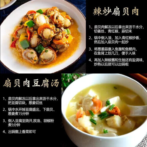 肉质紧实,大连扇贝丁,新鲜美味,原汁原味 个大饱满,只有一层保鲜冰衣,杜绝增重,保证品质不缩水,好食材会吃才重要,您可以选择辣炒,蒜蓉粉丝蒸扇贝,拌饭,凉拌,涮火锅,包饺子,