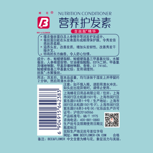 BEE & FLOWER 蜂花算得上是大家比较熟知的国货品牌了,属于上海华银日用品有限公司。而这款护发素也是蜂花旗下的老牌产品。在使用洗发水后使用顺滑滋养,改善干枯毛躁~