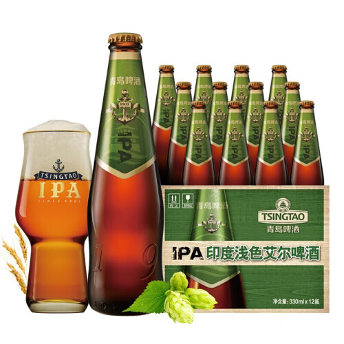 青岛啤酒(TSINGTAO)这款IPA印度淡色艾尔啤酒,选用水、麦芽、啤酒花及制品为配料酿制而成。酒液呈琥珀红色,麦香与苦香交融、散发出浓郁水果酯香,泡沫细腻丰富,口感醇厚圆润。茶色玻璃瓶身饰有绿色瓶标,简约大方。麦芽浓度14.0°P,酒精度≥5.2%vol。规格:330ml*12瓶。