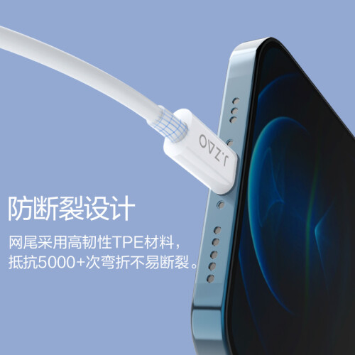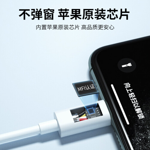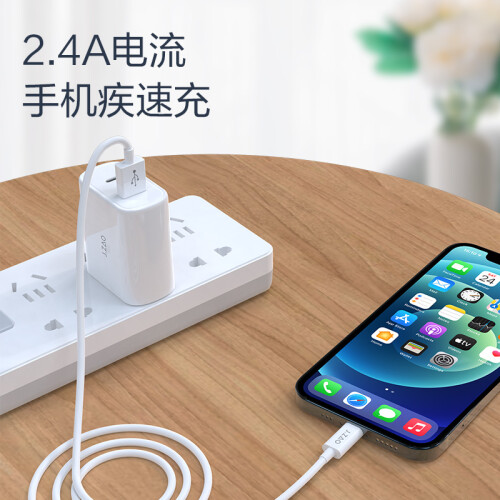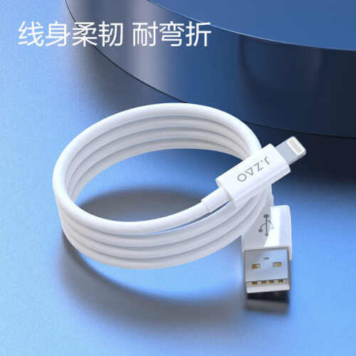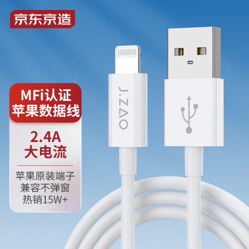 京东京造 JZLTA13WH MFi认证苹果数据线 采用苹果原装芯片,保护充电不易发热,全兼容IOS系统,双层屏蔽编织,电阻小,充电快,坚固耐用,2.4A大电流,MFI认证产品,线长1.2米。