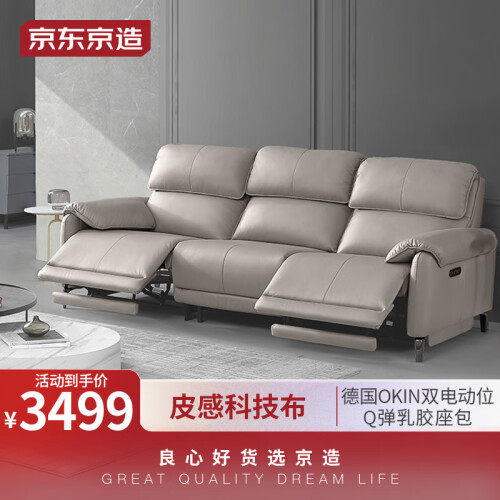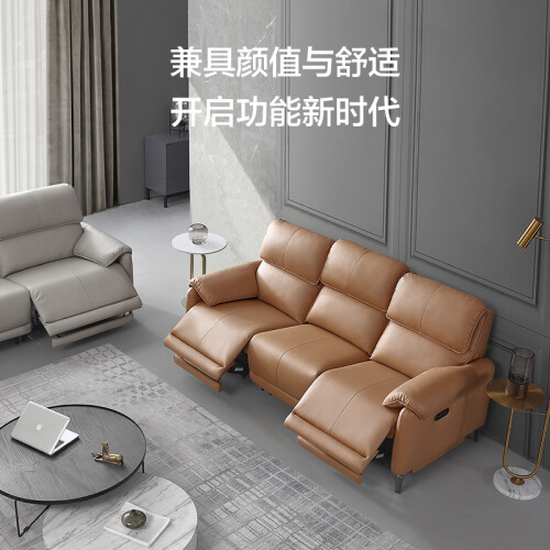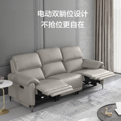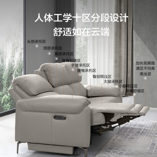 这款商品采用整张大皮制成,拥有电动双躺位,让家人一起享受。110°-160°大角度调节,坐躺都随心,一键即可享受零重力的体验。搭载德国OKIN功能架,高负重强支撑,使用更灵敏。沙发还有人体工学十区分段设计,能贴合人体曲线,舒缓肩颈,舒适放松腰背。53cm宽大的坐深设计,让你躺睡更舒适。座包依次填充乳胶层+35D高密东亚海绵+独立弹簧包,能做到一坐“弹3弹”,软而不塌,感受柔软包裹。