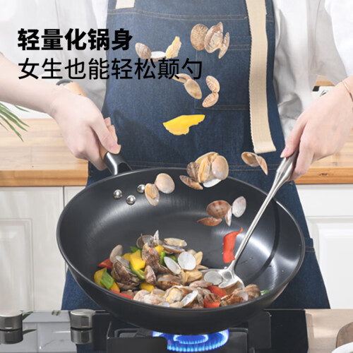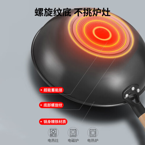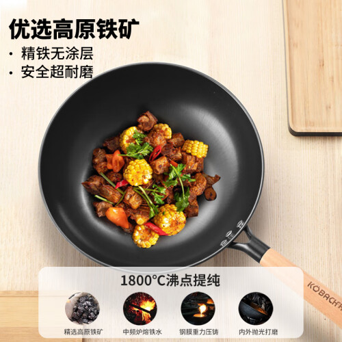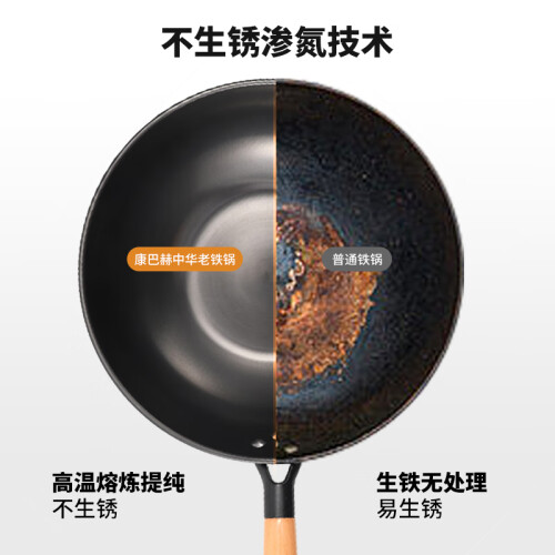 康巴赫推出的这款炒锅,采用优质高纯铁,经全身渗氮室化处理,锅体表面形成致密防锈层,增加锅体的耐磨性、表面硬度和抗蚀能力。优选2mm加厚锅壁,无涂层物理防粘,不易粘不生锈。轻韧锅身,畅快颠炒,单手可轻松提起。锅身结合处使用不锈钢铆钉加固,不易松动,结实耐用,耐高温、腐蚀。榉木手柄,人性化手柄隔热防烫,握感舒适。均匀受热,不挑炉具。轻油烟,使保持厨房卫生,减少健康隐患。炒菜时不易粘锅,节省清洗时间。透明钢化玻璃盖,内部直观可视,更自如地掌握火候和烹饪时间。